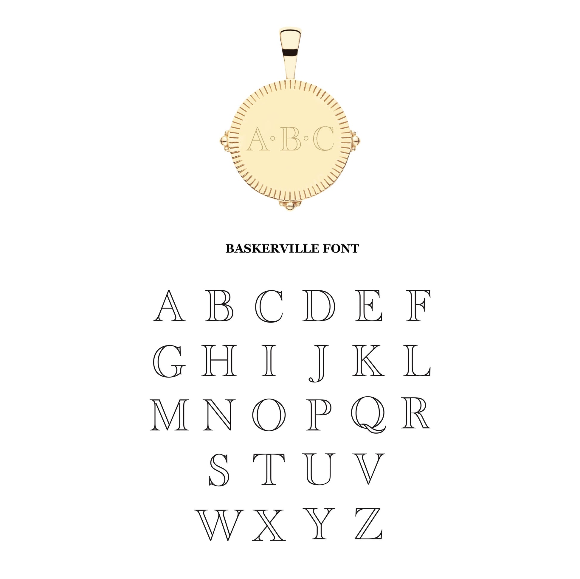 Personalize this pendant by selecting three letters to engrave! We have two fonts to choose from for this pendant - Baskerville, a classic serif font, or Block, a deco-style font to fit the shape of the heart.