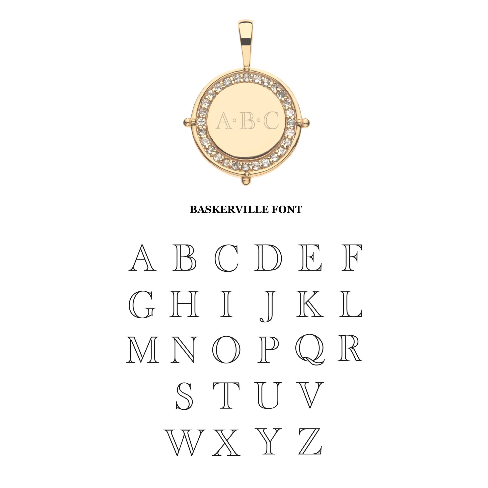 - For Janie font or Baskerville font, we recommend you use the order of your initials: First, Middle, Last (e.g. ABC). For these fonts, there will be a dot between each letter unless otherwise specified in the order notes.