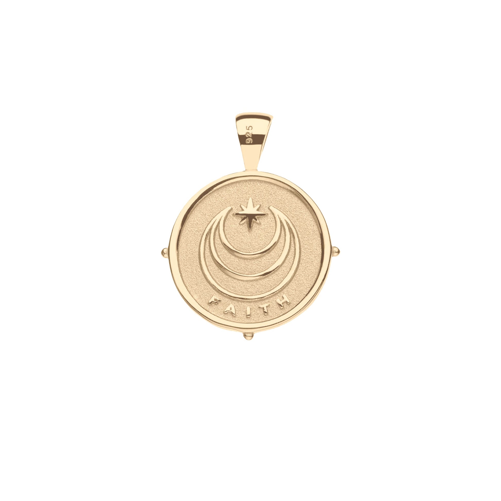 - Coin pendant 1" in diameter, made in solid 14k gold.