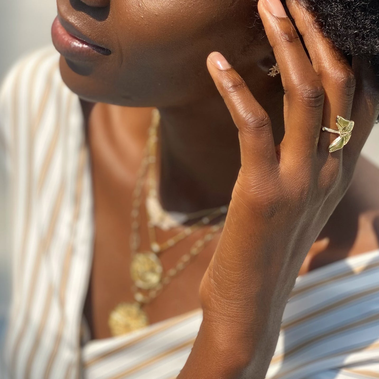 Butterfly measures approximately 3/4" in wingspan. Ring is 2.2mm thick.
