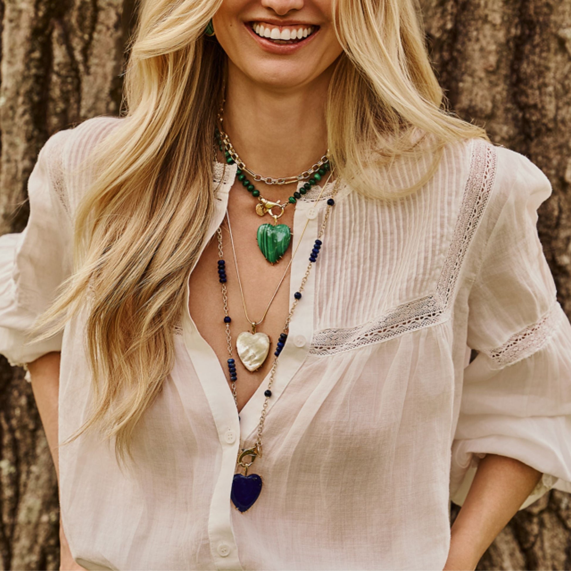 Please Note: We love how special this stone is. Malachite is a natural stone and will have variations in color and pattern - this is what makes it so unique! To extend the life of your stone, avoid swimming or bathing with it. If it needs a cleaning, just polish it with a soft cloth or a small amount of water and hand soap.