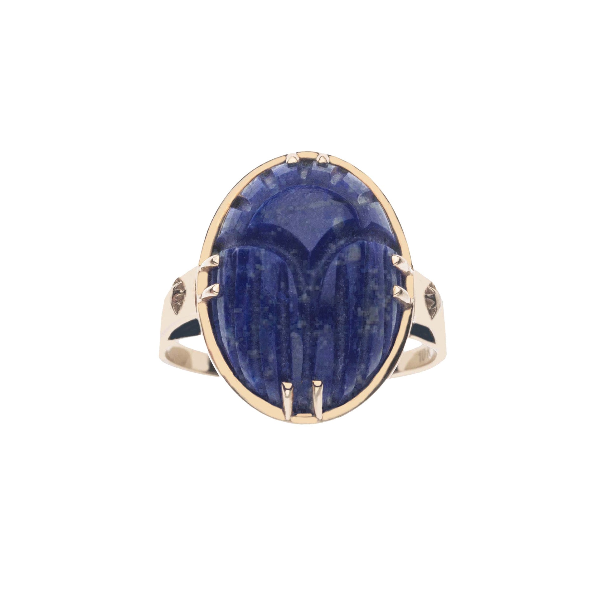 The scarab beetle has been used in jewelry for centuries. These amulets are worn as protection and symbolize the cycle of life. This newest addition to our PROTECT Collection is based off the classic lapis ring given to Jane by her mom, accented with a hand carved lapis scarab for extra layer of protection.