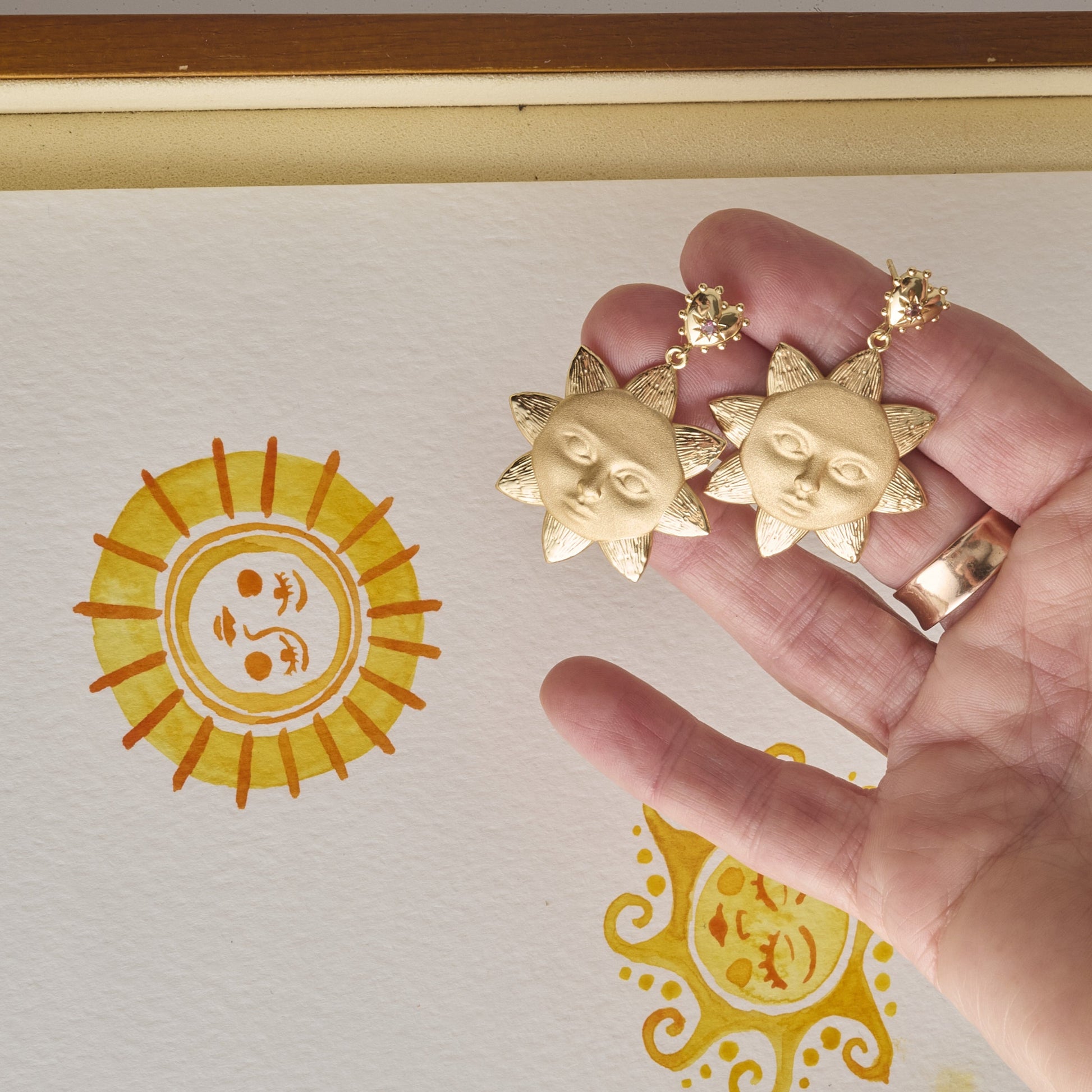 The Sun - the ultimate guiding star. We have a slight obsession with old coins, and this sun face is giving us all the vintage feels! Finished with a matte gold face, light-reflecting shiny rays, and topped with a pink-tourmaline accented heart topper, this pendant will *brighten* up your neckmess.